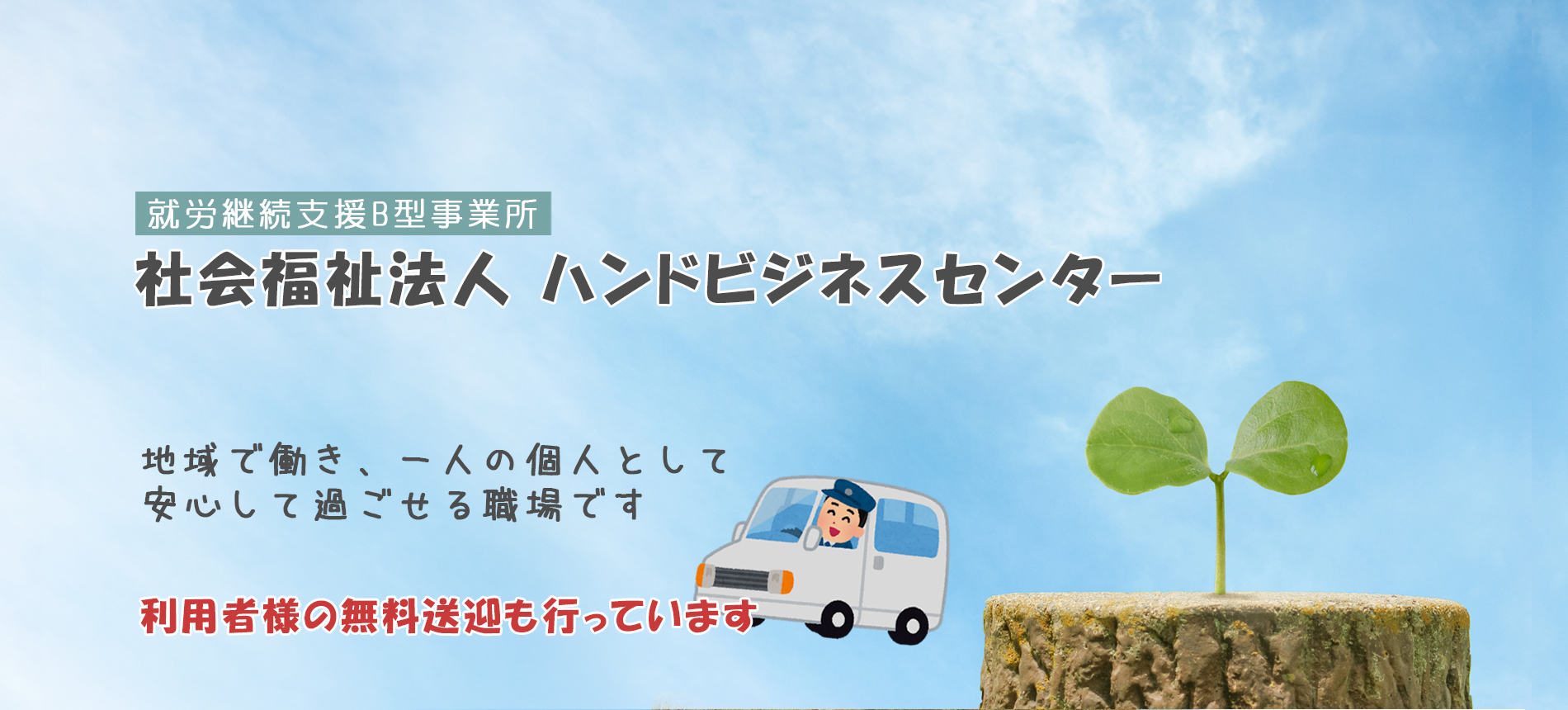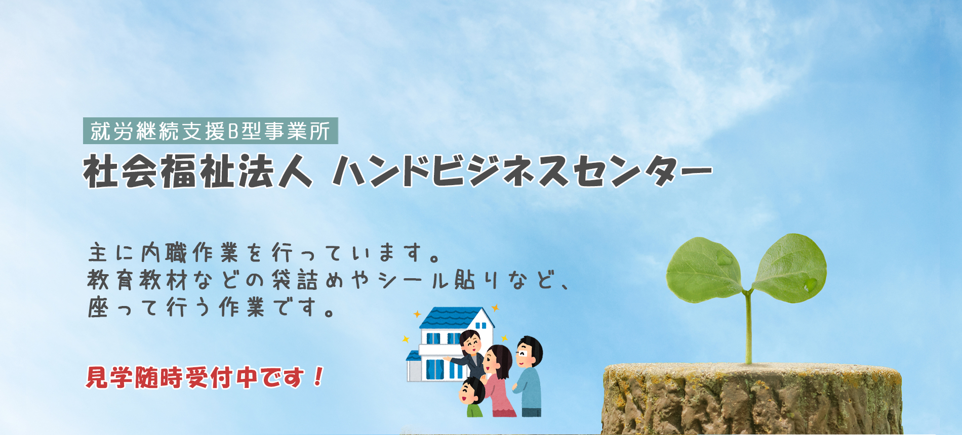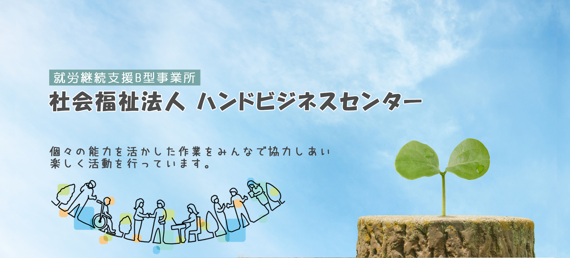 「社会福祉法人ハンドビジネスセンター」は、就労継続支援B型事業所として、昭和52年寝屋川市に設立いたしました。働くことに障害のある方がサポートを受けながら仕事や日中活動をしています。地域で働き、一人の個人として安心して過ごせるよう多くの人に支えられながら活動を続けています。